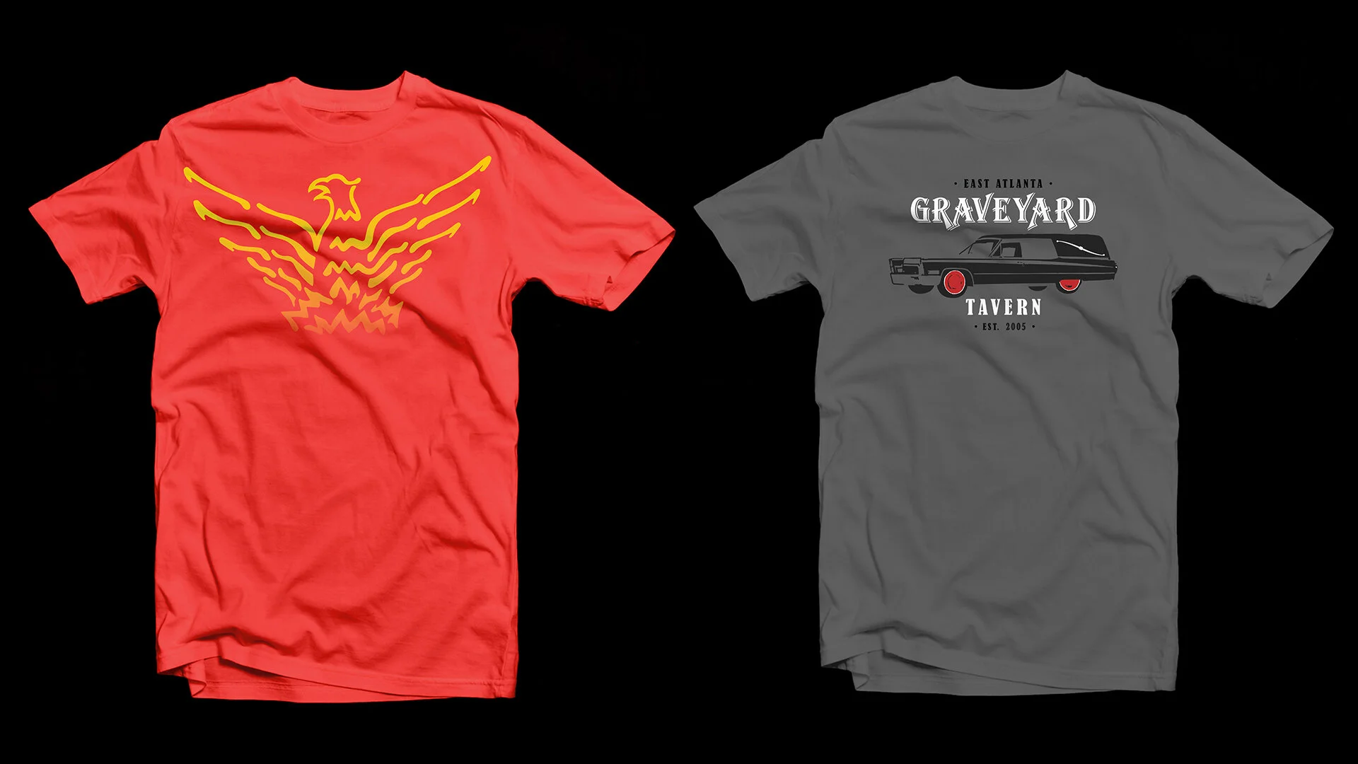Logo Design and T-shirt Designs for a local T-Shirt Company highlighting Atlanta’s history and local businesses.